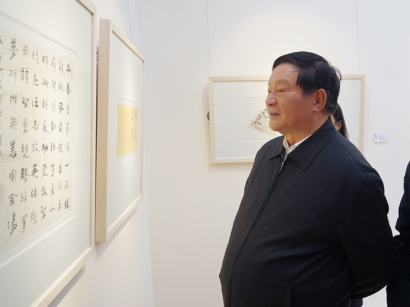 北京市政协原主席陈广文同志、商务部原副部长张志刚同志、中国文联原副主席夏潮同志在书法展上亲切交谈